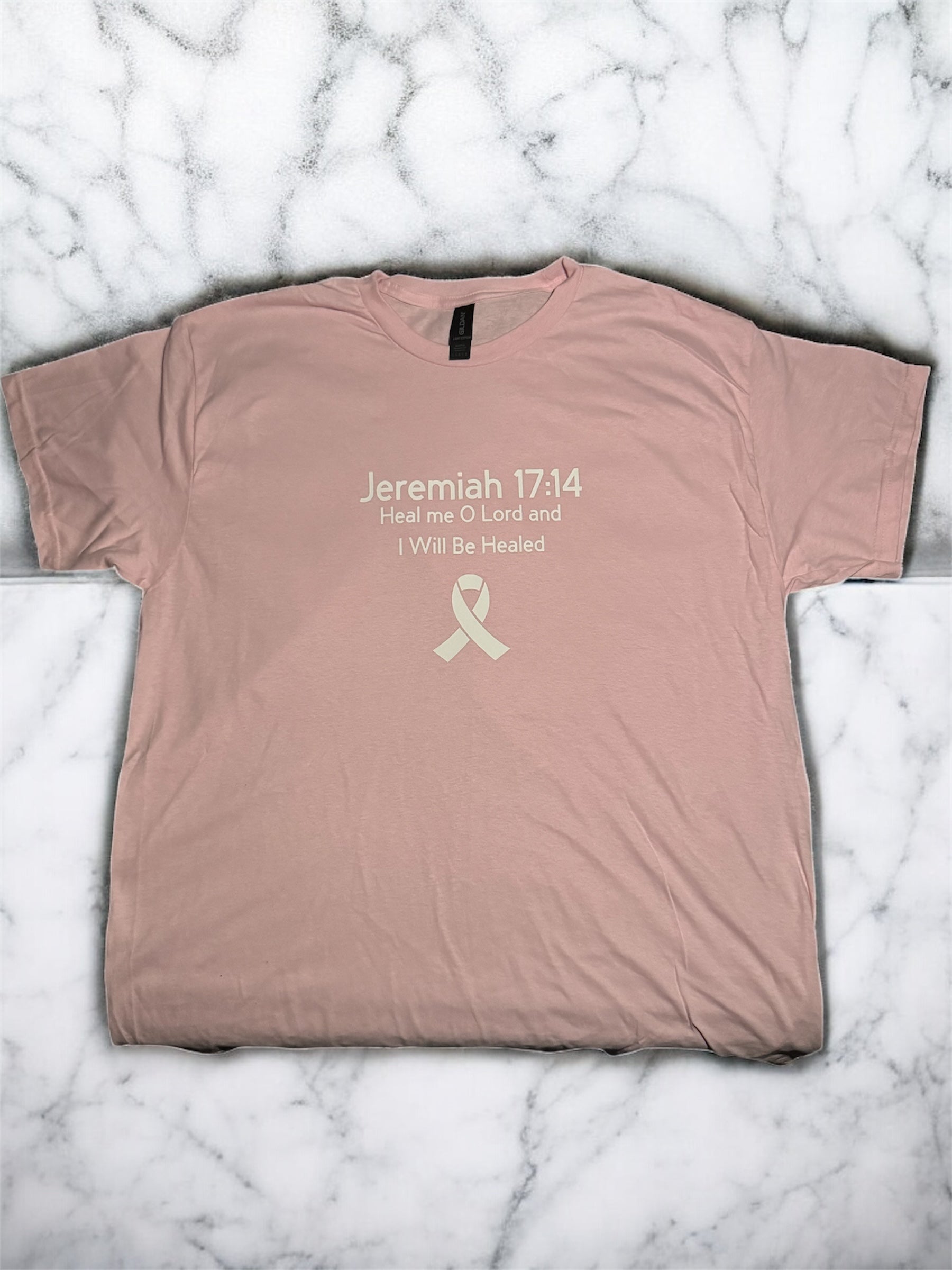 Show your support and spread hope with our Breast Cancer Awareness Shirt featuring Jeremiah 17:14. This inspiring design carries the powerful scripture: “Heal me, O Lord, and I will be healed; save me and I will be saved, for you are the one I praise.” A verse that embodies strength, healing, and unwavering faith, it’s a message of encouragement for survivors, fighters, and loved ones alike. Crafted from soft, breathable fabric, this shirt is perfect for everyday wear or awareness events. The combination of faith and support makes it more than just a shirt — it’s a symbol of love, resilience, and belief in God’s healing power.